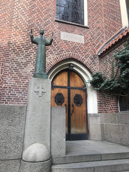 Den mellersta väger 325 kg och är en gåva från den norska församlingen i Paris som under lång tid firade i vår kyrka. De lämnade på 90-talet men börjar återvända. Den bär inskriptionerna: "Må frid råda bland bröderna och kärlek i tron till Gud Fader och Herren Jesus Kristus" och på andra sidan: "Tacksamma norrmän i Paris har gett denna klocka till Sofia-församlingen - 1929."