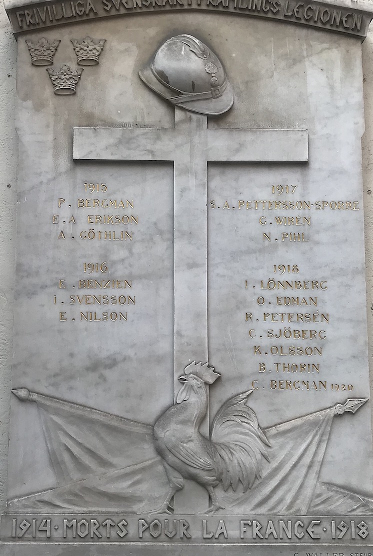 Det finns tre. Den första väger 550 kg och köptes med hjälp av privata donationer. Den bär församlingens motto sedan 1600-talet: "Herren är min herde, jag skall intet fattas" (Psalm 23, vers 1). På andra sidan bär den inskriptionen: "Gåvorna till denna klocka samlades bland svenskar från Sverige och Frankrike. Den monterades 1929 efter att ha blivit gjuten samma år i Stockholm av K.G.M. Bergholz."