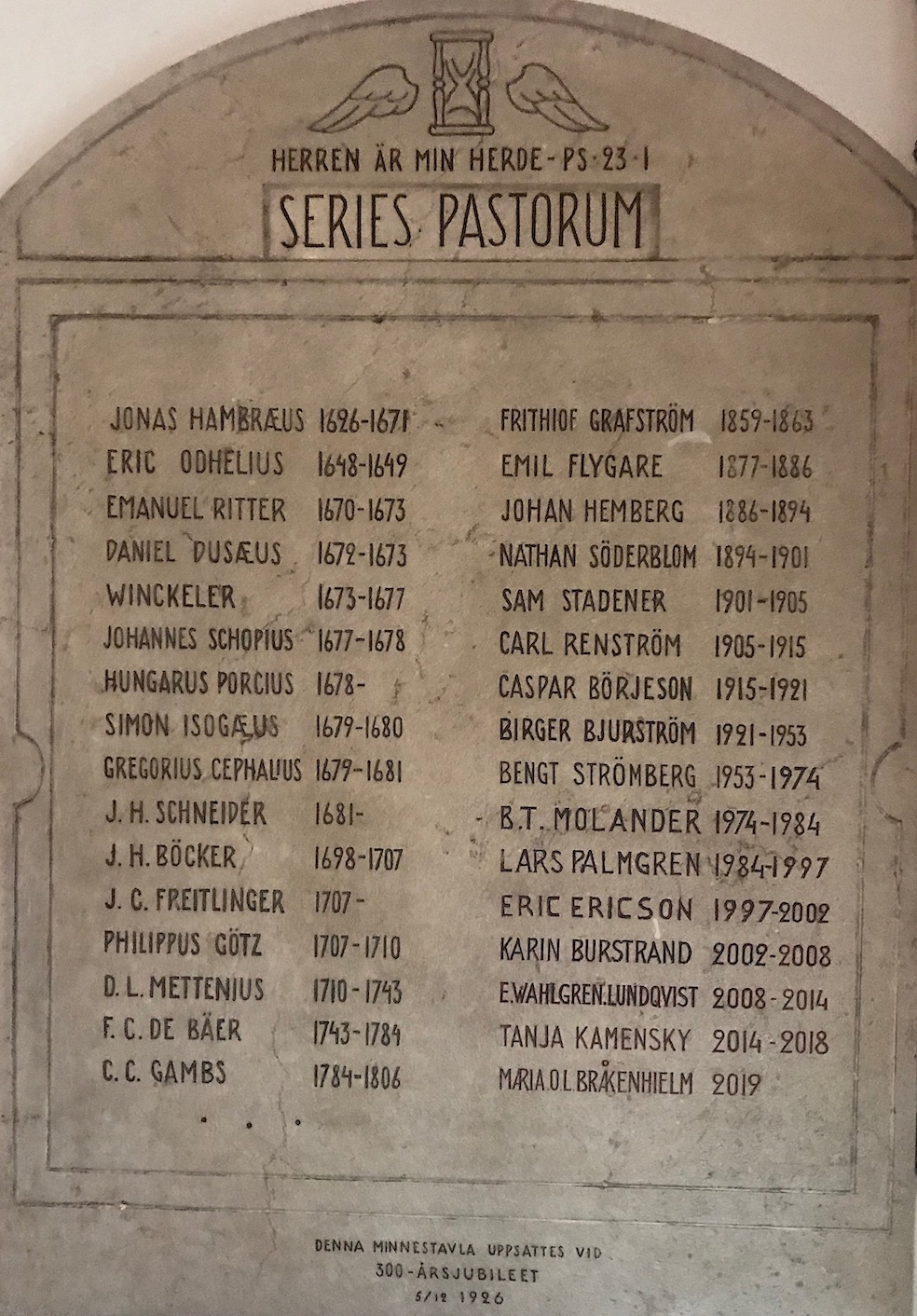 Lutheranerna har återvänt till organisationen av de första kristna gemenskaperna i det romerska antika. Hierarkin för religiösa aktörer är förenklad: de lokala troendes församlingar (församlingen) leds av en pastor. Pastorn är en lekman (utan religiös makt) som har fått en gedigen teologisk (religiös) utbildning för att vara kapabel att leda en församling. Efter avslutade studier erhåller pastorn ordination, vilket är erkännandet av hans färdigheter och ger honom rätten att lokalt representera den lutherska kyrkan. Han kan vara gift och har ofta en familj. I många lutherska kyrkor kan även kvinnor vara pastorer. Alla pastorer, oavsett grad, är lika i rättigheter. Den lutherska kyrkan har en ganska demokratisk organisation. Pastorn och några lekmän bildar församlingsrådet som hanterar församlingen och beslutar om religiösa aktiviteter. Församlingarna samlas i regionala synoder där både pastorer och lekmän finns. Där debatteras stora religiösa riktlinjer. På nationell nivå finns en nationell synod där delegater från de regionala synoderna sitter. Denna plakett skapades för att fira den 300-åriga jubileet av Sveriges kyrka i Paris. Hittills har den haft 32 pastorer, ungefär tio per sekel. Ett vackert vittnesbörd om stabilitet och långlivlighet!