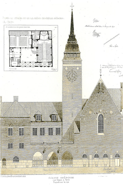 De båda samarbetade och ansvarade för genomförandet av projektet, som fick kung Gustaf V:s välsignelse. (Naville och Chauquet byggde även den protestantiska kyrkan i 19:e arrondissementet i Paris år 1921). Ursprungligt program och funktion